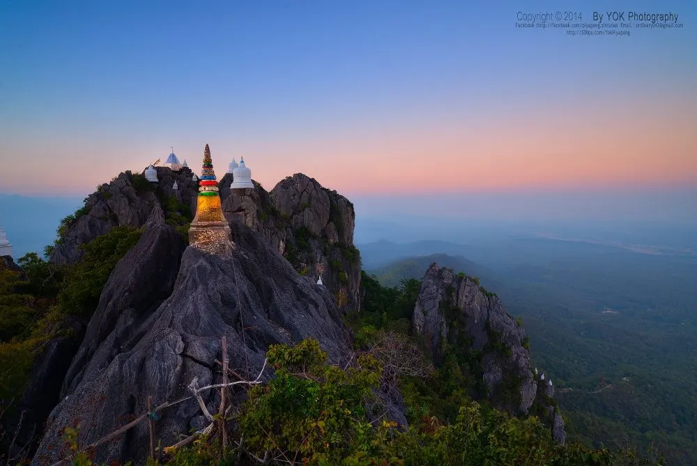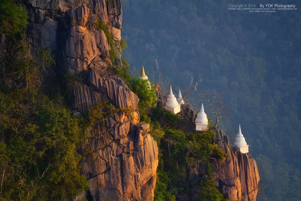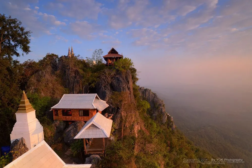 หรือชื่อเดิมเรียกว่า “วัดพระพุทธบาทปู่ผาแดง” ซึ่งตั้งอยู่ที่ อำเภอแจ้ห่ม จังหวัดลำปาง สิ่งที่โดดเด่นของวัดนี้จนทำให้มีชื่อเสียงโด่งดัง คือ ภาพอันงดงามของเจดีย์เล็กๆสีขาวสร้างขึ้นบนภูเขาสูงเสียดฟ้า ล้อมรอบไปด้วยทิวเขาสูง ซึ่งสร้างจากแรงศรัทธาของมนุษย์เป็น ภาพที่ดึงดูดให้ใครหลายคนอยากเดินทางไป