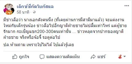 ป็นเรื่องราวที่น่าตื่นเต้นสุดๆ เมื่อชาวเน็ตตาดีได้สังเกตเห็นแหวนที่ นิ้วนางข้างซ้ายของสาวเจนี่ ต่างก็สงสัยว่าเจ้าตัวได้หมั้นไปแล้วหรือเปล่า เพราะมีข่าวว่าเจ้าตัวกำลังคบหากับเด็กรุ่นน้อง ที่มีชื่อว่า “มิคกี้ นนท์” แถมทางด้านของเพจดัง ยังได้เผยเรื่องราวที่ของดาราสาวที่เคยมีสามีมาแล้วกำลังจะแต่งงานกับแฟนหนุ่มรุ่นน้อง งานนี้คงต้องรลุ้นกันแล้วว่า ดาราสาวคนนั้นจะใช่สาวเจนี่หรือเปล่า เชื่อว่าแฟนคลับหลายคนต้องลุ้นกันสุดๆ