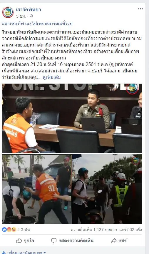 วินจยย.พัทยารับผิดเหตุเตะหน้านทท.เยอรมันเผยชนวนต่างชาติด่าหยาบ