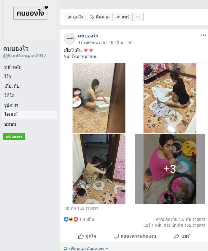 เมื่อวันที่ 17/4/2561 ที่ผ่านมา ทางเพจ คนของใจ ได้ดฑสต์รูปภาพของชายหญิงคู่หนึ่งที่ภรรยานั้ดีสดๆท ั้งกับข้าว ทำงานบ้าน