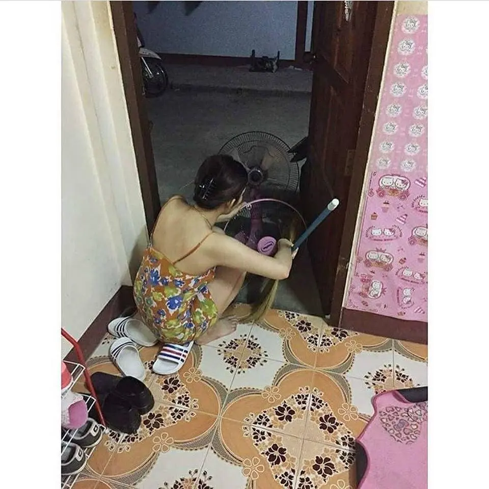 เช็ดพัดลม ทำเอาหนุ่มหลายคนอิจฉากันเลยทีเดียว
