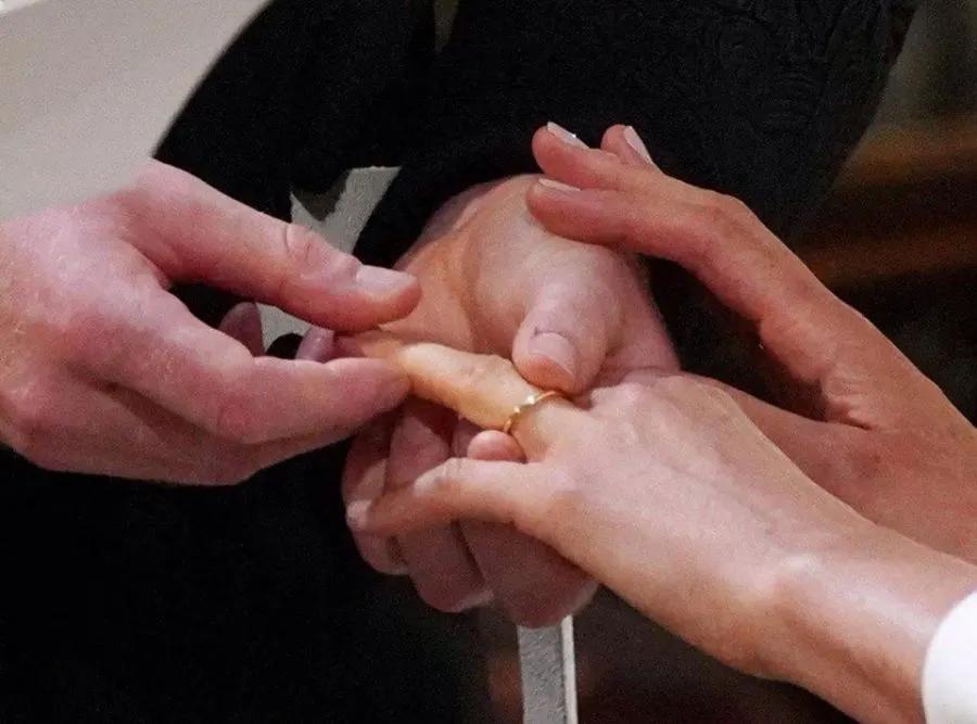 รายงานระบุว่าเจ้าฟ้าชายชาลส์เป็นผู้พาเจ้าสาวเดินเข้าไปยังจุดประกอบพิธีที่เจ้าชายแฮร์รี่ทรงคอยอยู่ เนื่องจากนายโทมัส บิดาของมาร์เคิล ไม่สามารถมาร่วมพิธีได้หลังจากเข้ารับการผ่าตัดหัวใจ