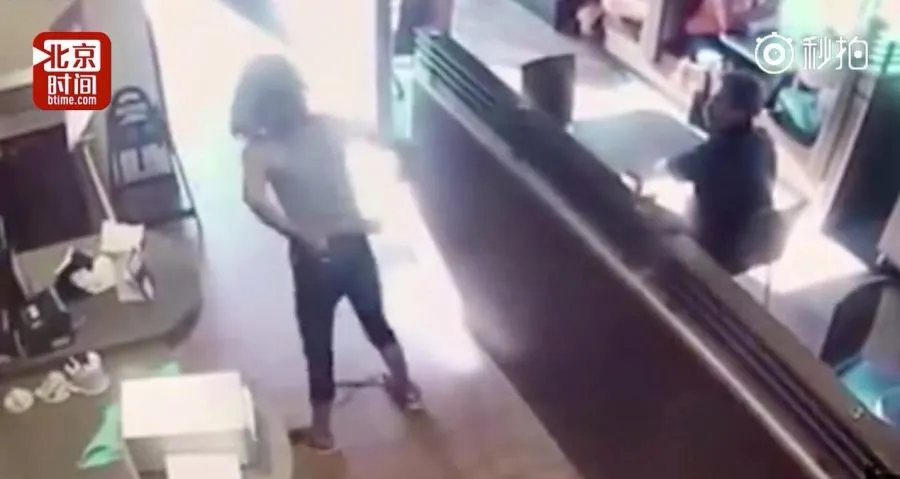 ไม่กี่วินาทีต่อมาหญิงสาวผู้โมโหหัวฟัดหัวเหวี่ยงได้เดินไปหยิบกระดาษชำระ ก่อนจัดการถลกกางเกงลงและยืนพิงผนังกั้นกลางร้านแล้วเบ่งอุจจาระออกมา ขณะพนักงานคนหนึ่งพยายามห้ามปราม