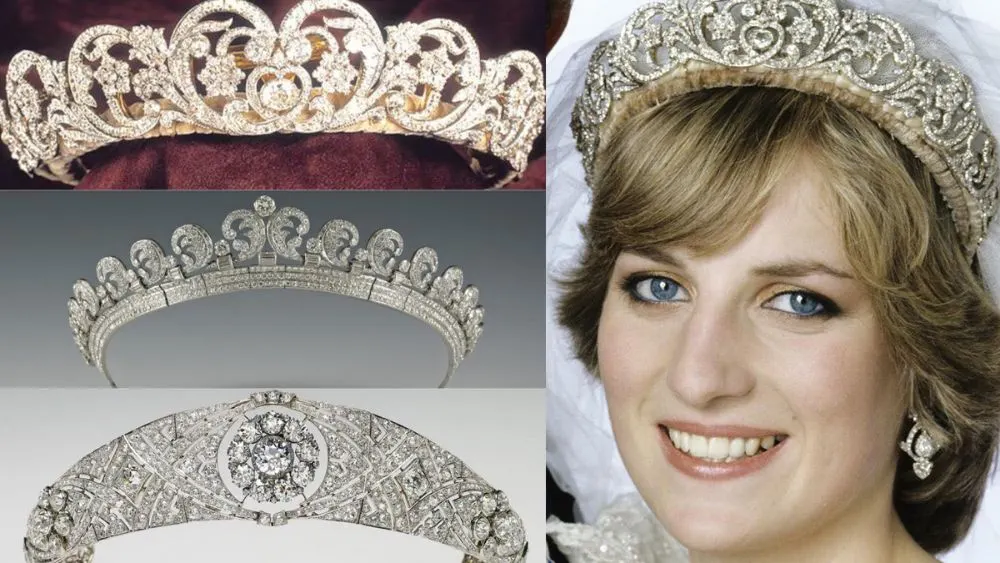๑. “เทียร่าประจำตระกูลสเปนเซอร์” (Spencer Tiara) เป็นที่ทราบกันดีว่า “ไดอาน่า เจ้าหญิงแห่งเวลส์” มีพระชาติกำเนิดในตระกูลขุนนางสำคัญอย่างตระกูล “สเปนเซอร์” แต่เดิมเมื่อปี ๒๔๖๒(คริสต์ศักราช ๑๙๑๙) มีเพียงส่วนกลางของเทียร่า ต่อมาในปี ๒๔๗๓(คริสต์ศักราช ๑๙๓๐) เทียร่านี้ได้รับการรังสรรค์ขึ้นใหม่โดยร้านแกร์ราร์ด(Garrard) เป็นแบบในปัจจุบัน พระองค์ทรงเทียร่านี้ในพระราชพิธีอภิเษกสมรสกับเจ้าฟ้าชายชาลส์ เจ้าชายแห่งเวลส์ มกุฎราชกุมารแห่งสหราชอาณาจักร เมื่อวันที่ ๒๙ กรกฎาคม ๒๕๒๔(คริสต์ศักราช ๑๙๘๑) ณ มหาวิหารเซนต์พอล กรุงลอนดอน