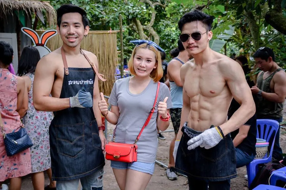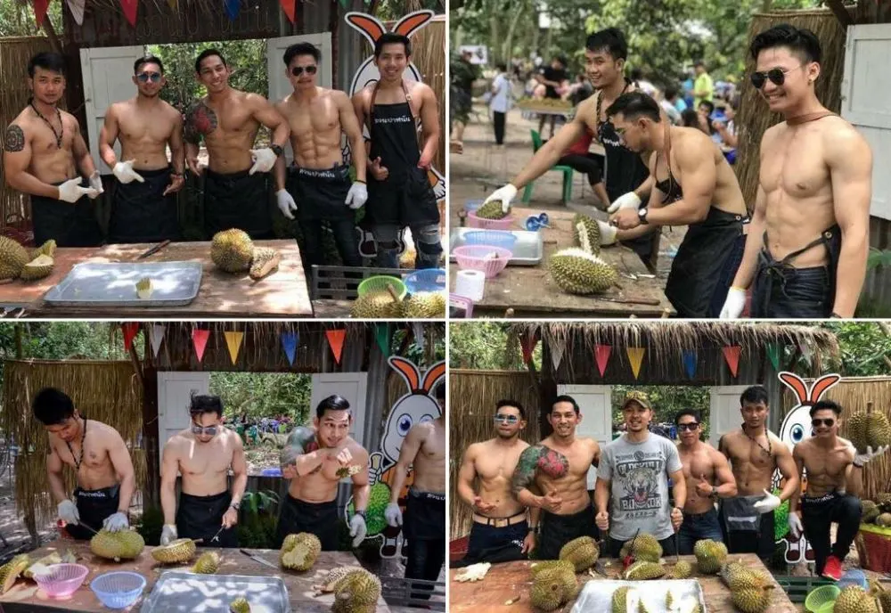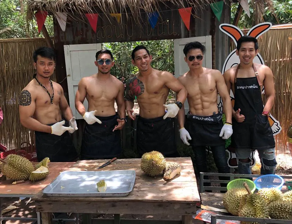 นายชาคริต อ่างศิลา อายุ 36 ปี เจ้าของสวนผลไม้ กล่าวว่า ตนทำงานประจำเป็นพนักงานโรงงาน ส่วนงานรองก็มาช่วยพ่อทำสวนผลไม้ สวนปาหนันต.ตะพง อ.เมือง จ.ระยอง โดยขอแรงเพื่อน ๆ 10 คนรับหน้าที่พ่อค้าจำเป็น ทั้งหมดเป็นนักกีฬาเพาะกายที่เล่นฟิตเนสด้วยกัน กลุ่มนักกล้ามสายหมี ซึ่งเป็นสมาชิกเพาะกายและฟิตเนสแห่งประเทสไทย ทำให้ลูกค้าสาว ๆ หนุ่ม ๆ ชอบ และถ่ายรูปแชร์ออกไปเป็นกระแสที่ได้รับความสนใจ เพราะมีกิจกรรมให้เล่น ปิดตาพ่อค้าแล้วป้อนทุเรียนสาว ๆ ใครกินหมดก่อนชนะ มีรางวัลคือผลไม้กลับบ้านไปกินฟรีอีก 2 กิโลกรัม เลือกได้ทั้งมังคุด เงาะ สละ บางคนแซวว่าอยากไปชิมทุเรียนและพ่อค้าถึงที่ ส่วนคอมเมนต์ผู้ชายบอกว่า เอาพวกมันไปเผาทิ้ง ถือว่าแรง แต่พวกตนก็ไม่ได้คิดอะไรกับกระแสลบ ขอปล่อยผ่านดีกว่า ส่วนคอมเมนต์เต้ยน่ะหรือ อิอิ