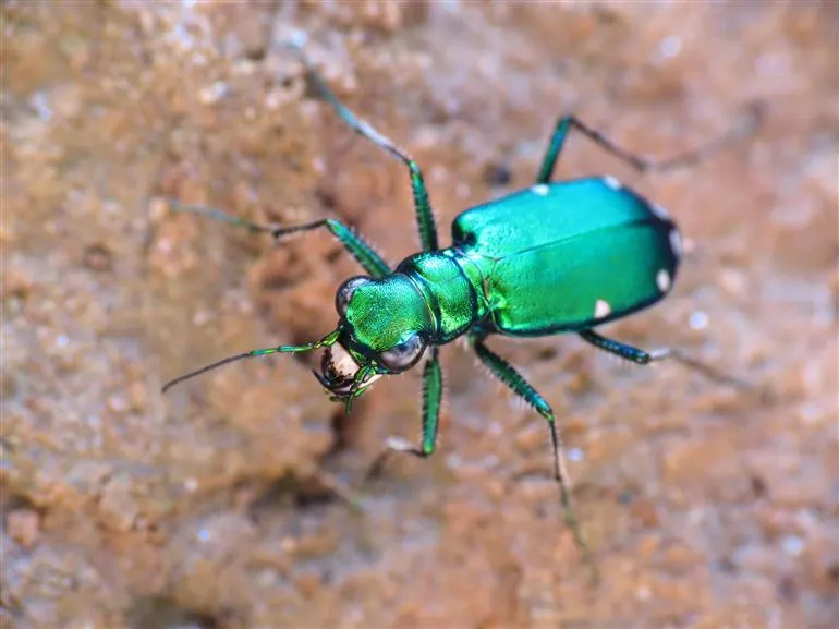 เริ่มกันที่ ด้วงเสือ หรือที่เรียกว่า Tiger beetle หากใครเคยอ่านบทความจากเว็บของเราจะทราบดีว่านี่คือ สิ่งมีชีวิตที่เร็วที่สุดในโลก หากเทียบขนาดของมันกับมนุษย์ พวกมันจะวิ่งได้เร็วถึง 494 กิโลเมตรต่อชั่วโมงเลยทีเดียว ทำลายสถิติของรถยนต์ที่เร็วที่สุดในโลกได้อย่างราบคาบ แมลงชนิดนี้พวกมันมีสีสันที่สวยงาม พบได้ทั้งสีเขียว น้ำเงิน แดง และมีทั้งเหลือทั้งดำ มีเขี้ยวยาวโค้ง นิสัยดุร้าย ออกล่าเหยือด้วยการจับแรงสั่นสะเทือน ลากลงไปกินในโพรงของมันอย่างสบายใจ