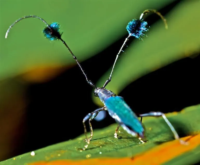 ตัวที่สองเป็น ด้วงที่มีชื่อว่า Longhorn beetle เหมือนกับชื่อของมัน ด้วงชนิดนี้มีหนวดที่ยาวมากๆ ยาวเท่ากับลำตัวของมันเลยครับ มีอยู่ด้วยกันมากถึง 26,000 สายพันธุ์ พบได้ทางซีกโลกตะวันออก ตัวอ่อนของพวกมันเป็นศัตรูพืชของชาวสวน ชอบกัดกินใบพืชสร้างความเสียหายไปทั่ว ไอ้ตัวนี้ไม่น่าสงวนเท่าไหร่