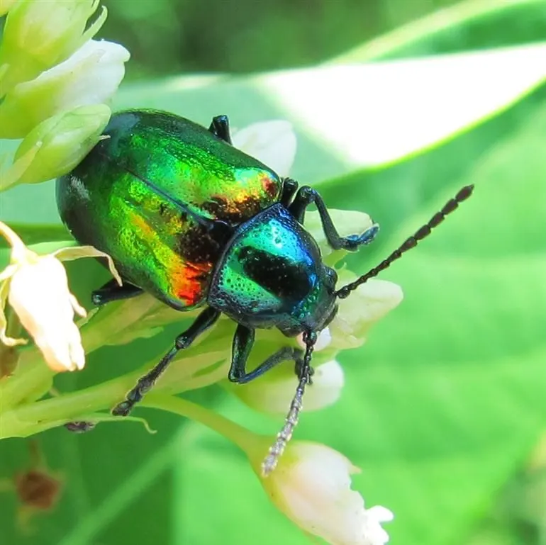 ตัวที่สี่เป็น Dogbane beetles สายะพันธุ์ด้วงสีสันสวยงามจากอเมริกาเหนือ พบได้ในแถบเขาร็อกกีตัวของมันมีสีสันเป็นสายรุ้ง โตเต็มที่ยาว 8-11 มิลลิเมตร ดูแล้วก็เหมือนๆ กับแมลงทับบ้านเรา