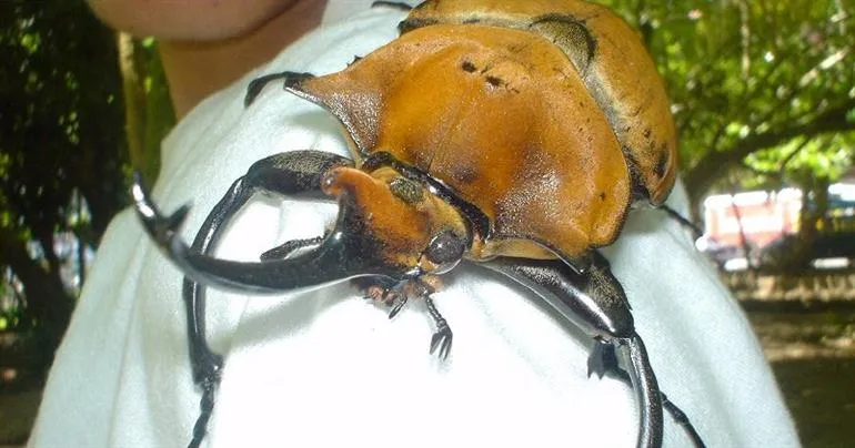 สุดท้ายเป็น ด้วงช้าง หรือ Elephant Beetle ด้วงขนาดใหญ่ที่พบได้ในแถบ เม็กซิโก อเมริกากลาง ป่าฝนของอเมริกาใต้ ออสเตรเลีย พวกมันเป็นด้วงที่มีเขาโง้งสวยงาม ตัวขนาดใหญ่ เขาของมันมีไว้ป้องกันศัตรู ตัวโตเต็มที่ยาวได้ประมาณ 7-12 เซนติเมตร โดยตัวผู้จะใหญ่กว่าตัวเมีย 2-3 เท่า เลยทีเดียว จัดเป็นแมลงที่มีขนาดใหญ่สุดๆ เลยน่ะ