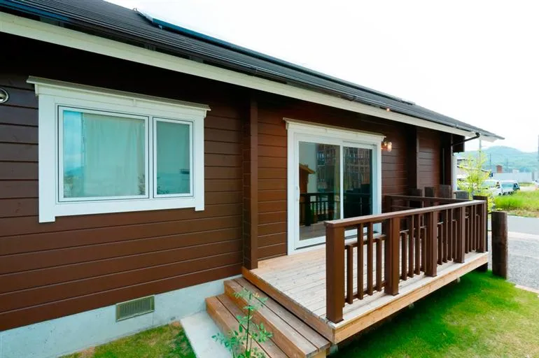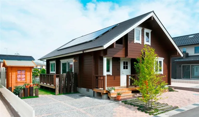 แบบบ้านไม้หลังนี้เป็นแนวคันทรี่สไตล์ญี่ปุ่น ตัวบ้านเป็นลักษณะชั้นครึ่ง หลังคาทรงจั่วออกแบบให้มีเฉลียงด้านหน้าเล็กน้อย ตัวบ้านยกพื้นขึ้นเล็กน้อย ผนังรอบบ้านตกแต่งด้วยไม้สีเข้ม ตัดกับวงกบประตูสีขาวสวยงามโดดเด่น ที่ด้านข้างของตัวบ้านยังออกแบบให้มีระเบียงไม้เล็กๆ ไว้เดินเล่นด้วย