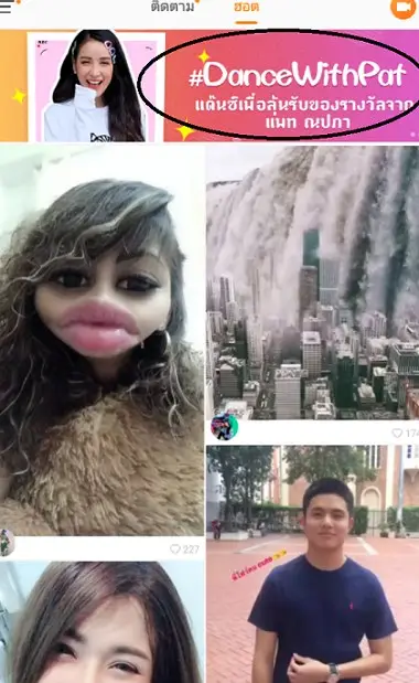 แต่เราอยากดูคลิปที่เต้นกับพี่แพททำยังไงดี อ้อ ด้านบนหน้าฟีด มีแบนเนอร์ว่า Dance With Pat ขึ้นมาเลย