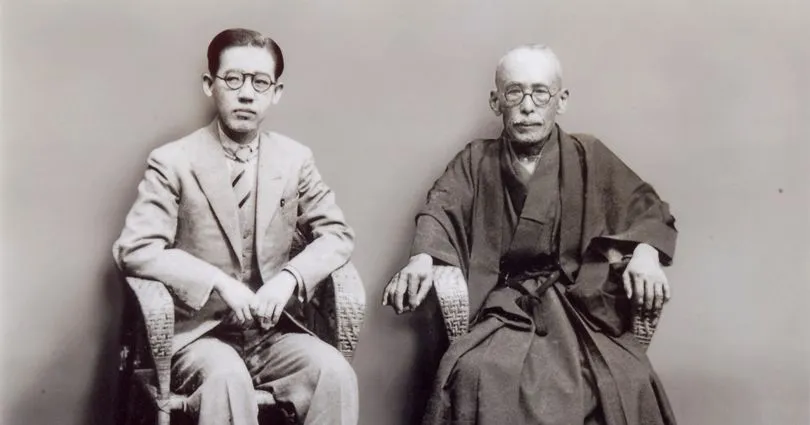 คาวาชิมะ นานิวะ กับ คาวาชิมะ โยชิโกะ ที่สถานีรถไฟโอซากา ภาพนี้ถ่ายในเดือนธันวาคม 1925 หลังเธอกร้อนผมไม่นาน ที่มาของภาพ