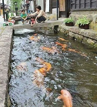 เท่าที่อ่านเรื่องของเมืองนี้ได้ความว่าน้ำในรางระบายน้ำมาจากแหล่งน้ำตามธรรมชาติเลยไหลเอื่อยๆไม่ใช่น้ำขัง มีการกั้นด้วยตะแกรงเป็นระยะๆกันปลาคาร์ฟไม่ให้หลุดเข้าไปในรางระบายน้ำใหญ่ คนรักปลาคาร์ฟอย่างเราเลยอยากย้ายไปอยู่เมืองนี้จริงๆ