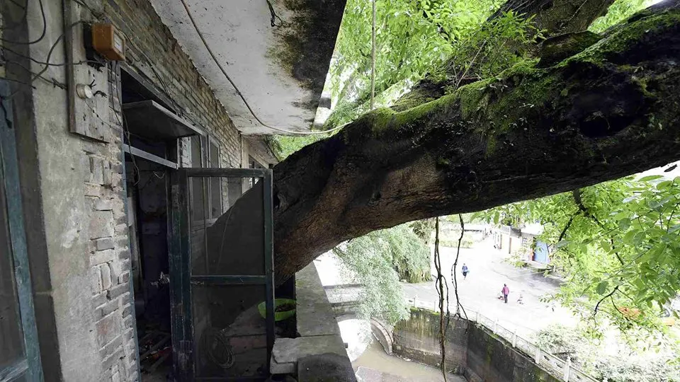 พบอีกหนึ่งภาพที่สะท้อนความพยายามอยู่ร่วมกันอย่างกลมกลืนระหว่างมนุษย์กับธรรมชาติ สำหรับอาคารที่พักอาศัยในอำเภอซินเซิงของนครฉงชิ่งทางจีนตะวันตกเฉียงใต้ ซึ่งปลูกสร้างเป็นเกราะคุ้มครองเจ้าถิ่นผู้มาก่อนหลายร้อยปี