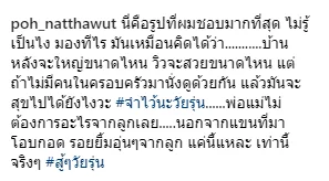 ทำเอาแฟนคลับหลายคนเข้ามาชมว่า พี่ป๋อเป็นพ่อที่น่ารักและอบอุ่น มีข้อคิดดีๆ มาสอนเตือนใจเสมอ และยังชมว่า ภาพนี้เป็นภาพที่เห็นแล้วอบอุ่นจริงๆ