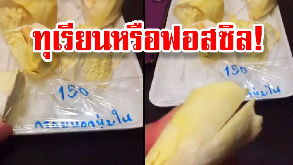 ผู้ใช้เฟซบุ๊กคุณ Pitchaya Sirimungkalakul ได้โพสต์คลิปโชว์ทุบทุเรียน ที่พึ่งซื้อมา โดยหน้าห่อเขียนว่า “กรอบนอกนุ่มใน” แต่ทุบแรงขนาดนี้ทุเรียนยังไม่เละ สงสัยจะกรอบ หรือจะแข็งเป็นหิน กันแน่ โดยถึงกับบอกว่า “ทุเรียนหรือฟอสซิล!”