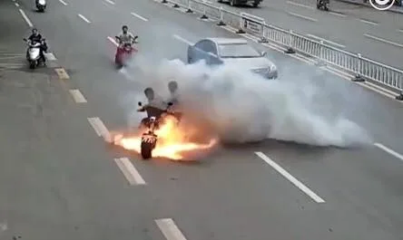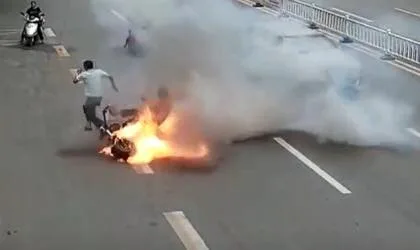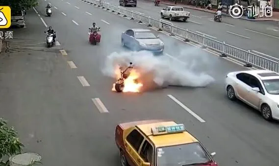 เมื่อวันที่ 4 มิ.ย. ที่ผ่านมา ที่เมืองก้านโจว มณฑลเจียงซี เกิดเหตุรถจักรยานไฟฟ้าไฟลุกขึ้นกลางถนน ส่งผลให้ชายจีนสองคนที่เป็นคนขับและคนซ้อนต้องทิ้งรถวิ่งหนีตายกลางถนน โดยหนึ่งในนั้นได้รับบาดเจ็บด้วย