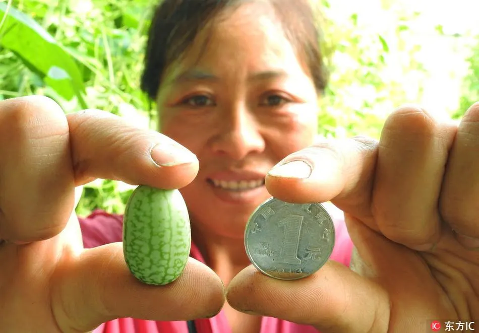 ชมภาพที่ถูกบันทึกไว้เมื่อเร็วๆนี้ ของแตงโมขนาดจิ๋ว ที่มีขื่อว่า "เมาส์ เมลอน" (Mouse melon) ที่ถูกนำเข้ามาจากเม็กซิโกและอเมริกากลาง ซึ่งว่ากันว่าแตงโมขนาดเล็กเท่าเม็ดองุ่นหรือเหรียญ 1 หยวนนี้มีรสชาติจืดเหมือนกับแตงกวา และเมื่อแตงโมชนิดนี้ถูกนำเข้ามาปลูกในอำเภอเจียงผู่ มณฑลเจียงซู ทางตะวันออกของประเทศจีน ก็กลายเป็นผลไม้ที่ได้รับความนิยมอย่างมากสำหรับบรรดาผู้มาเยือนอำเภอแห่งนี้