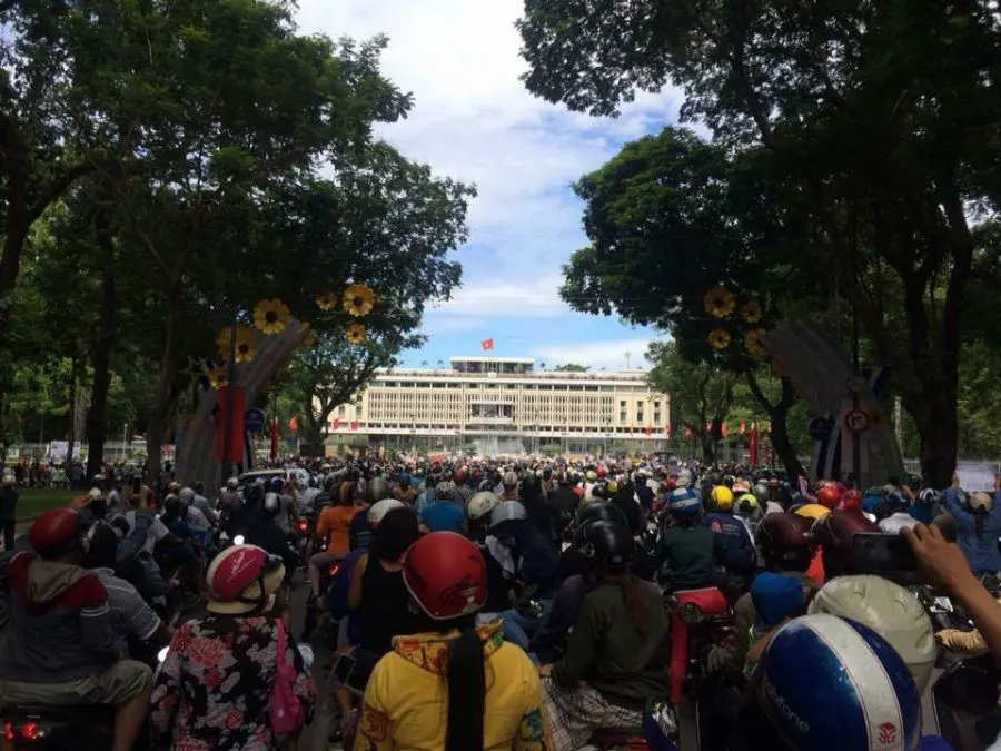 ขณะที่ยังมีภาพการชุมนุมที่จังหวัดญาจาง ดานัง ฯลฯ ส่วนศูนย์กลางชุมนุมใหญ่อยู่ที่นครโฮจิมินซีตี้ หรือไซ่ง่อน เมืองหลักของเวียดนามตอนใต้