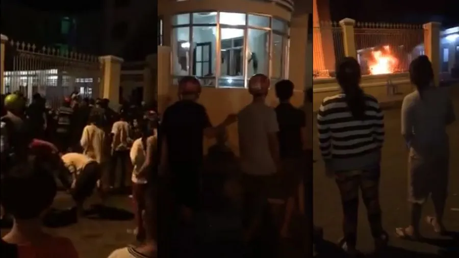 การชุมนุมที่จังหวัดบิ่ญถ่วนซึ่งเมื่อคืนวันที่ 10 มิ.ย. ลุกลามกลายเป็นเหตุจลาจลทำลายอาคารสถานที่ของรัฐบาล (ที่มา: Dam Lam Bao)