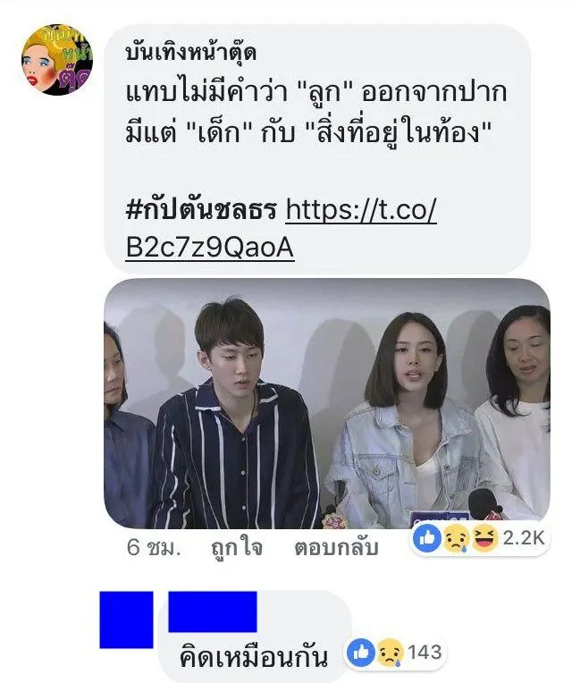 หลังจากวานนี้ (12 มิถุนายน 2561) กัปตัน ชลธร ดาราหนุ่มวัยรุ่น พร้อมด้วย มิ้งค์ ศวภัทร อดีตแฟนสาว เน็ตไอดอล วัย 23 ปี ออกมาแถลง ปมตั้งท้อง แต่สิ่งที่โลกโซเชียลได้มีการตั้งข้อสังเกตว่าในการแถลงข่าว กัปตัน ไม่พูดคำว่า "ลูก" แต่อย่างใดจนจบการสัมภาษณ์ แต่กลับเรียกว่า "เด็ก", "สิ่งที่เกิดจากผม", "สิ่งที่อยู่ในท้อง", "เด็กในท้อง" แทน จนกลายเป็นประเด็นดราม่าในขณะนี้