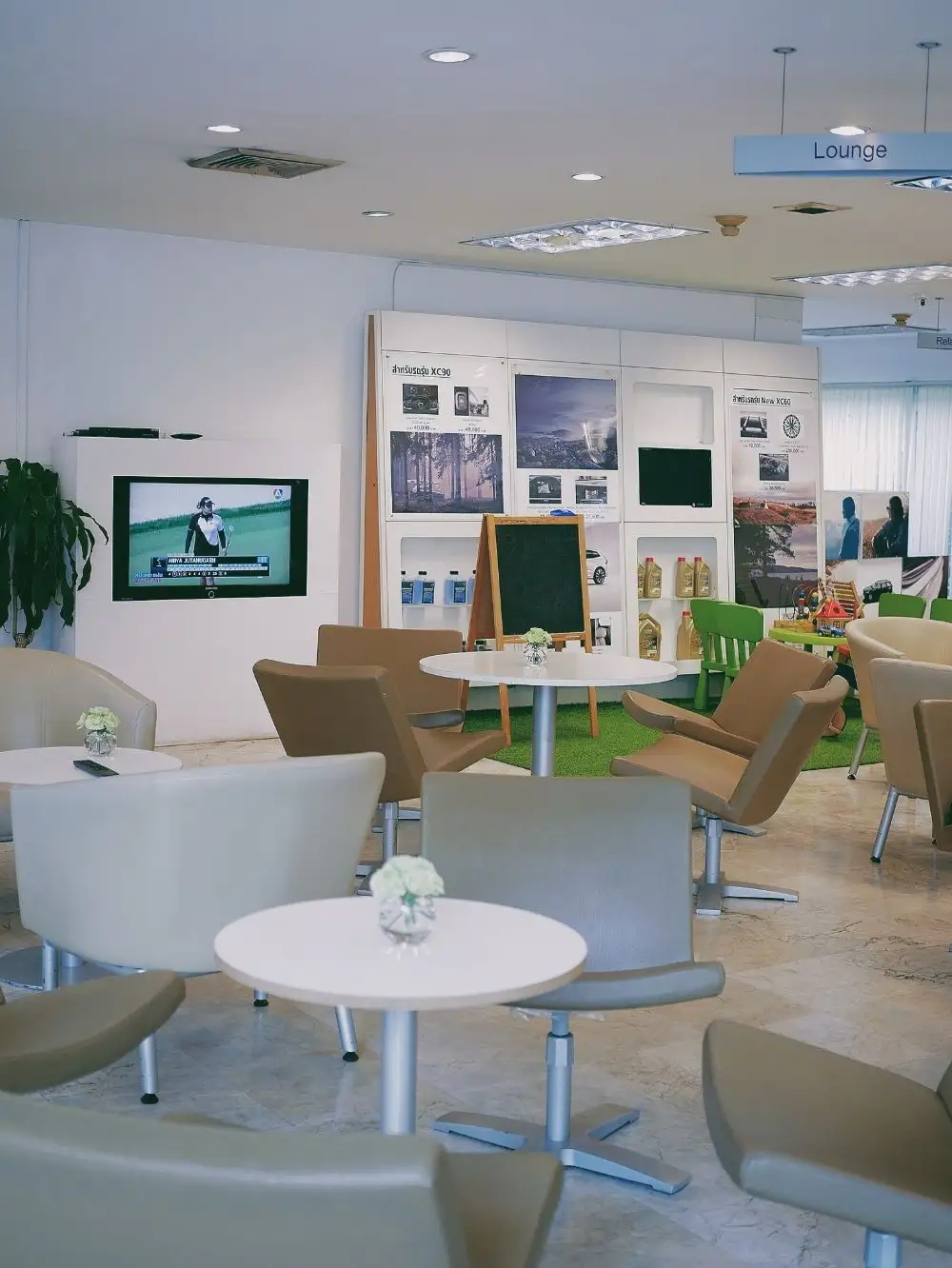 มาถึงโชว์รูมนั่งรอที่โซนรับแขกที่จัดไว้ให้ลูกค้าที่เข้ามารับบริการ ข้างในโชว์รูมก็ค่อนข้างกว้างสบาย นั่งดูทีวี ที่นี่มีของว่างขนมนมเนย เตรียมต้อนรับไว้พร้อม สักพักนึงก็มีพนักงานเข้ามาสอบถามให้คำแนะนำเกี่ยวกับความต้องการของรถยนต์ ที่เราต้องการทดลองค่ะ ส่วนตัวเราเองก็ไม่มีความรู้เกี่ยวกับรถยนต์ไม่มากนัก พี่พนักงานที่นี่ก็ให้คำแนะนำคำปรึกษาได้ดีมากค่ะ^^ ดูไปดูมาสรุปว่าสนใจทดลองรุ่น V40 หรือชื่อเต็มคือ Volvo V40 T4 Dynamic Edition