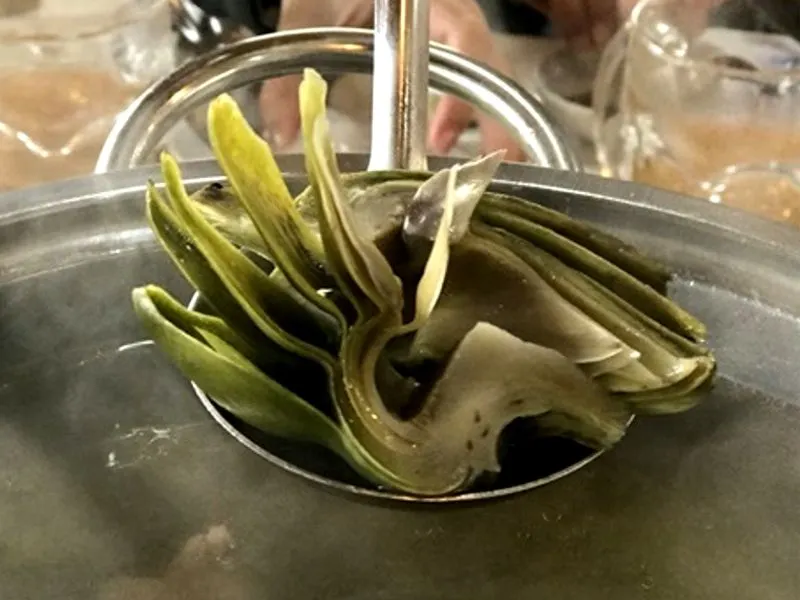 การปรุงซุปอาร์ติโชคคือ เด็ดกลีบดอกออกให้เหลือส่วนตรงกลาง แล้วนำมาต้มกับซุปกระดูกหมู อาร์ติโชคมีเนื้อสีเทาๆ และนุ่มละมุน ชาวดาลัดนิยมทานซุปเพื่อความชุ่มคอและคลายความหนาว