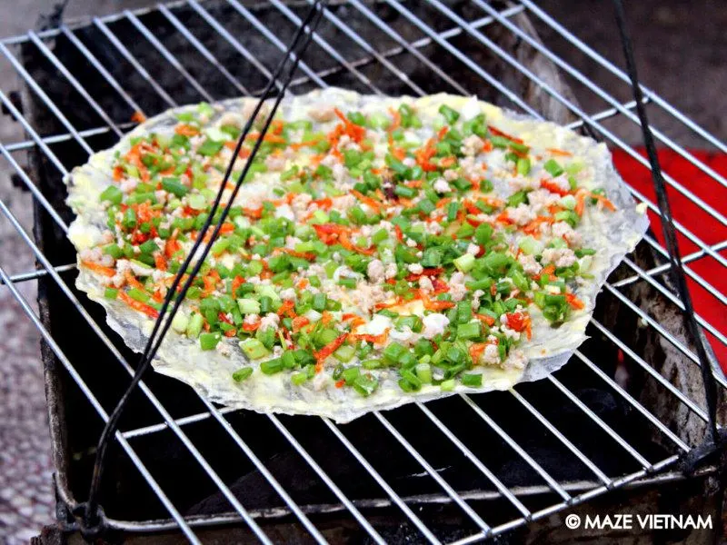 เป็นอาหารเวียดนามแนวฟิวชั่นเบาๆ ค่ะ พิซซ่าเวียดนามจะหาได้ตามร้านสตรีทฟู้ดในเมืองดาลัด ลักษณะจะแตกต่างจากพิซซ่าต้นฉบับที่เราคุ้นเคยกันเล็กน้อย โดยจะเป็นแผ่นแป้งบางที่นำมาย่างบนเตาถ่าน ใส่ไข่ ไส้กรอก ผัก หรือเครื่องปรุงต่างๆ ลักษณะการปรุงจะคล้ายๆ กับขนมโตเกียวหรือเครปที่ขายในบ้านเรา