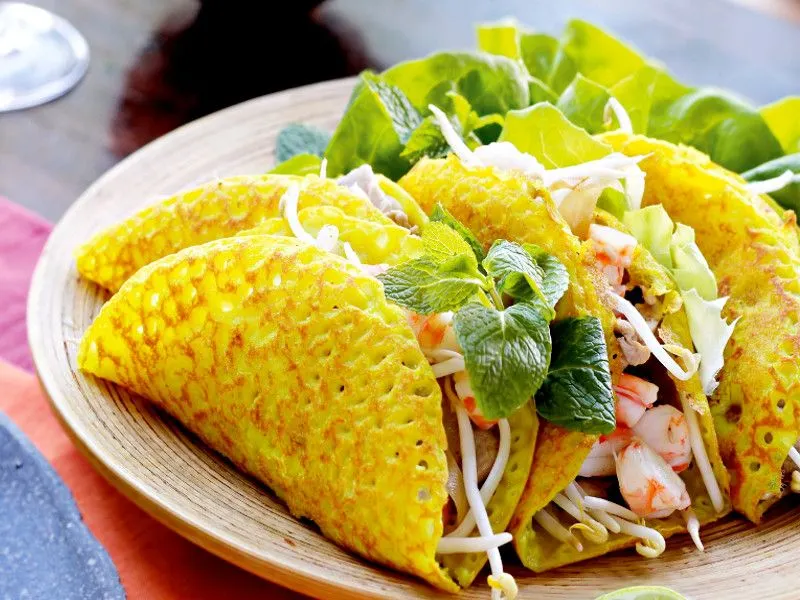 ถ้าเรียกชื่อว่า บั๊นแส่ว หลายคนอาจยังไม่ค่อยเข้าใจ แต่ถ้าบอกว่ามันคือขนมเบื้องญวน เชื่อว่าคงจะร้องอ๋อกันแน่นอนค่ะ บั๊นแส่วคือขนมเบื้องกรอบๆ ที่ทำมาจากข้าวเจ้าและผงขมิ้น แค่แป้งก็มีกลิ่นหอมแล้ว พอมารวมกับเครื่องปรุงยัดไส้อย่าง เนื้อหมู กุ้ง ถั่วงอก กับการปรุงรสด้วยสมุนไพรสูตรเฉพาะ ยิ่งหอมน่ากินมากขึ้นไปอีกถ้าอยากกินให้เหมือนชาวเวียดนามล่ะก็ ให้ตัดเป็นชิ้นพอดีคำ ห่อด้วยผักกาดอ่อนแล้วราดน้ำจิ้ม จากนั้นค่อยรับประทาน กินแบบนี้มีเบิ้ลแน่นอน