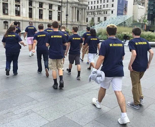 สโลแกนบนเสื้อคือ จงแตกต่าง แต่ใส่เหมือนกันทุกคนแบบนี้ ย้อนแย้งซ้า