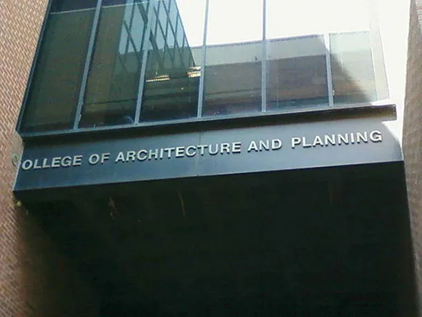 ตึกวิทยาลัยสถาปัตยกรรมศาสตร์และการผังเมือง แต่ตัวหนังสือทำไมล้นได้อีก ออกแบบยังไงเนี้ย 555