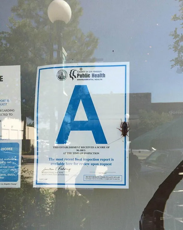 ป้ายที่บอกว่าสถานที่ดังกล่าวได้รับคะแนนความสะอาดระดับ A(nt) …แล้วไอ้ตัวข้างๆ นั่นมันระดับ C(ockroach)