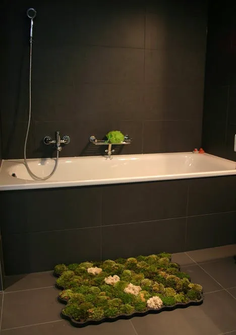 ที่มอสมันอยู่ได้โดยอาศัยน้ำที่กระเด็นจากตัวเราหลังอาบน้ำ ดูเป็นพรมที่เขียวๆ ฟูๆ น่ารักดี แต่เหยียบจริงน่าจะหยุยๆ เท้าหน่อยเนาะ ผลงานของ Nguyen La Chan ชาวสวิสเซอร์แลนด์