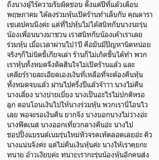 จู่ๆ ก็กลายเป็นประเด็นร้อนขึ้นมาทันที เมื่อนักร้อง-นักแสดงสาว “ซีแนม สุนทร” ได้ออกมาโพสต์เดือดถึงพฤติกรรมของน้องนางร้ายคนดัง หลังร่วมหุ้นเปิดร้านทำเล็บ แต่สุดท้ายมีปัญหาทำให้ไม่ได้เปิด และไม่ได้รับเงินหุ่นกว่าล้านกว่าบาทคืน เจ้าตัวได้ออกมาโพสต์ข้อความผ่านทางอินสตาแกรมส่วนตัวแบบจัดเต็ม โดยมีข้อความระบุว่า ….