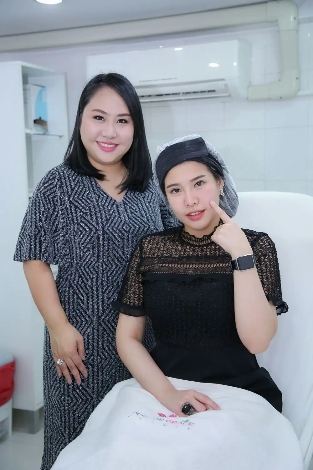 ใครที่อยากจะดูดีก่อนทำก็อย่าลืมศึกษาหาข้อมูลดีๆ และอย่ามองแต่เรื่องราคาถูกและโปรโมชั่นเท่านั้น ต้องดูความปลอดภัย และมาตรฐานด้วยนะคะ ถ้าใครไม่รู้จะไปทำสวยที่ไหน สาวฝ้ายก็แนะนำให้มาทำที่ ด็อกเตอร์เกรซ คลินิก ค่ะ รับรองว่าปลอดภัย ได้มาตรฐาน”