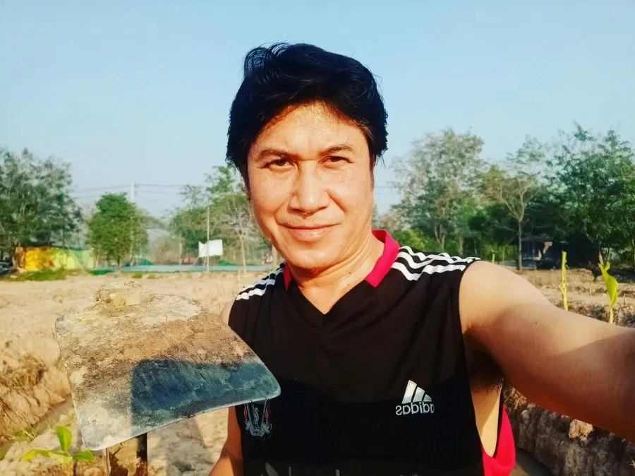 “ผมภูมิใจที่สุด ที่ได้ขึ้นทะเบียน เป็นเกษตรกร เต็มขั้น บางคนไม่เคยรู้ว่า พ่อหลวงรัชกาลที่ ๙ ของเรา พระองค์ท่านก็ขึ้นทะเบียน เป็นเกษตรกร แล้วเราเป็นลูกของท่าน เมื่อเราได้ขึ้นทะเบียนเป็นเกษตรกร เราก็รู้สึกปลื้มอกปลื้มใจ ภาคภูมิใจเป็นอย่างมากครับ...เช้าวันนี้ช่วยกัน แต่งโคนกล้วย พรวนดิน รดน้ำ ปลูกกล้วยเพิ่มไว้อีก3ไร่ บนร่องสวน อยู่ข้างหลังโรงทานเชษฐ์ เพื่อต่อไป กล้วยนี่แหล่ะ จะเลี้ยงดูโรงทาน โดยที่เราจะมีความมั่นคงยั่งยืนเพิ่มขึ้นไปเรื่อยๆ เกษตรพอเพียง ที่มีความก้าวหน้ายิ่งๆ ขึ้นไป..ขอให้ทุกท่านมีความสุขรอบด้านครับผม”