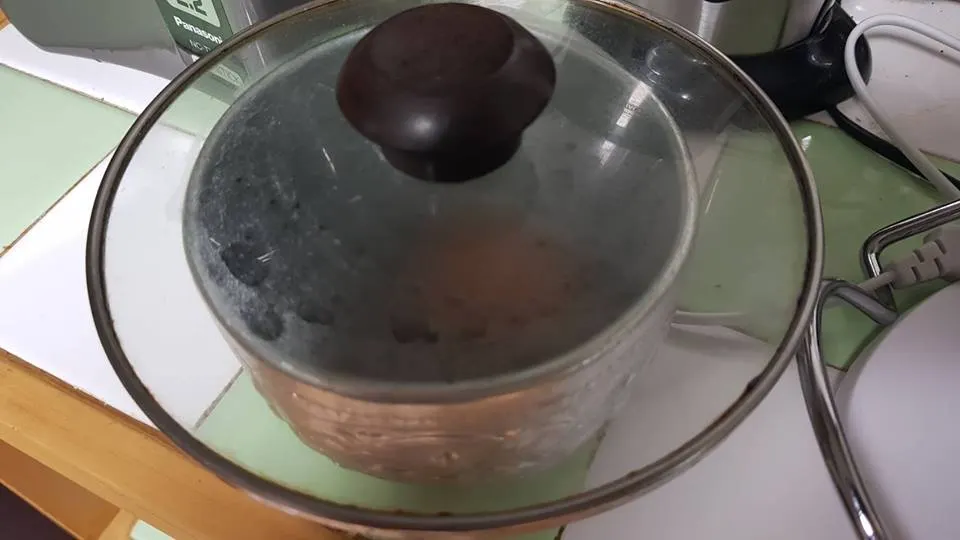 - จากนั้นก็ใส่ไข่ลงไปพร้อมใส่น้ำร้อนจนท่วมแล้วก็ปิดฝาตามรูป