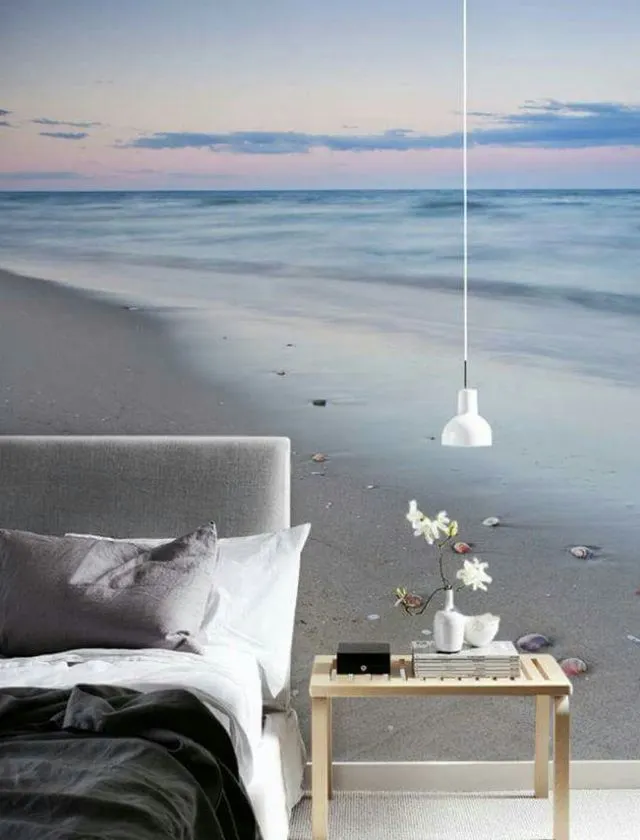 2.สำหรับใครที่ชื่นชอบหาดทรายสีขาวหรือรักการไปเที่ยวทะเลแล้วอยากจำลองทะเลมาไว้บนผนังห้องนอนเหมาะกับลายนี้สุดๆ