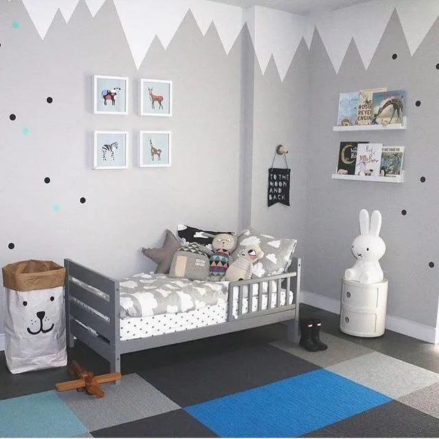 6.ผนังห้องสีเทาลายโพคาดอทสีดำเล็กๆ เรียบๆ ไม่หนาหรือเยอะจนเกินไป ก็ทำให้บรรยากาศดูสบายตา