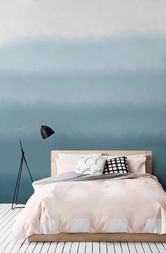 4.ผนังลายสีน้ำแบบไล่โทนสีตัดกันดูเรียบๆง่ายๆสบายตา