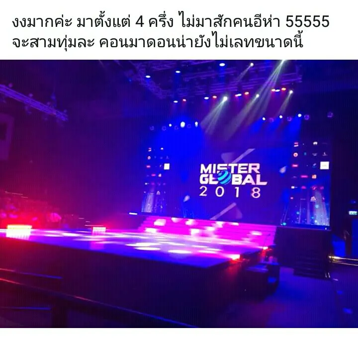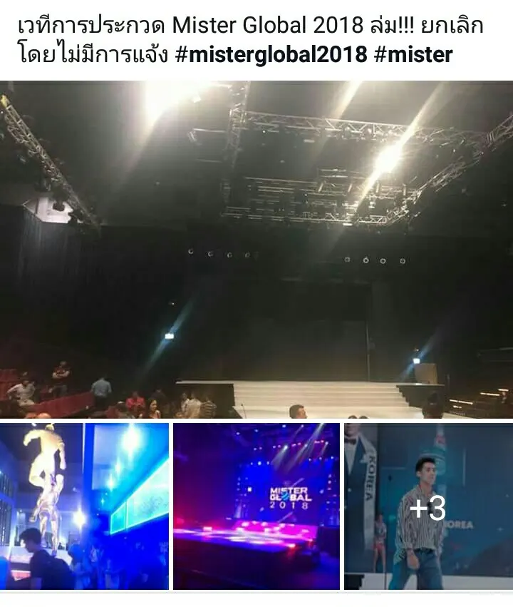 ดับไฟไล่ออก ทุกอย่างพร้อมแต่จัดไม่ได้เกิดอะไรขึ้นกับเวทีประกวดหนุ่มงาม มิสเตอร์โกลบอล 2018. ที่ต้องมีรอบตัดสินเกิดขึ้นเมื่อค่ำวานนี้ที่ เดอะสเตจ เอเซียทีค