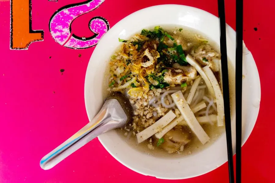 ผู้การแซวเราว่ากินอาหารไทยมาเยอะแล้ว อยากลองพามาชิมอาหารนานาชาติ ตอนนั้นในใจชาวหนีกรุงก็คิดว่าจะได้กินพาสต้า สปาเกตตี้ แต่ที่จริงแล้ว...อาหารนานาชาติที่ว่านี้ คือ อาหารเวียดนาม-กวยจั๊บญวนนี่เอง และนี่เป็นร้านกวยจั๊บญวนที่บอกได้คำเดียวว่า...ส้มตำอร่อยมาก ! (555)อย่าเข้าใจผิดว่ากวยจั๊บญวนวังมุขแลนด์ไม่อร่อย มันอร่อยค่ะคุณขา โดยเฉพาะเมนูกวยจั๊บญวนรวมมิตรไข่ลวก ซดนํ้าซุปกระดูกหวาน ๆ สูตรต้นตำรับที่เจ้าของช่วยกันคิดค้นในครอบครัว มันหวาน ๆ ละมุน ๆ ดี แต่พอผู้การสั่งจานต่อไป คือ ส้มตำปูปลาร้ามาให้เราลองชิมเท่านั้นแหละ...ขอบอกทุกท่านเลยค่ะว่าห้ามพลาด !! ร้านอาหารนานาชาติที่แท้จริง เวียดนามอีสานมาหมด ! กวยจั๊บวังมุขแลนด์ 218/3 ถ. ลงหาดบางแสน ต. แสนสุข อ. เมือง จ.ชลบุรี โทร. 08 4664 5495เปิดบริการทุกวันจันทร์ อังคาร และพฤหัส เวลา 15.00 น.-21.30 น.