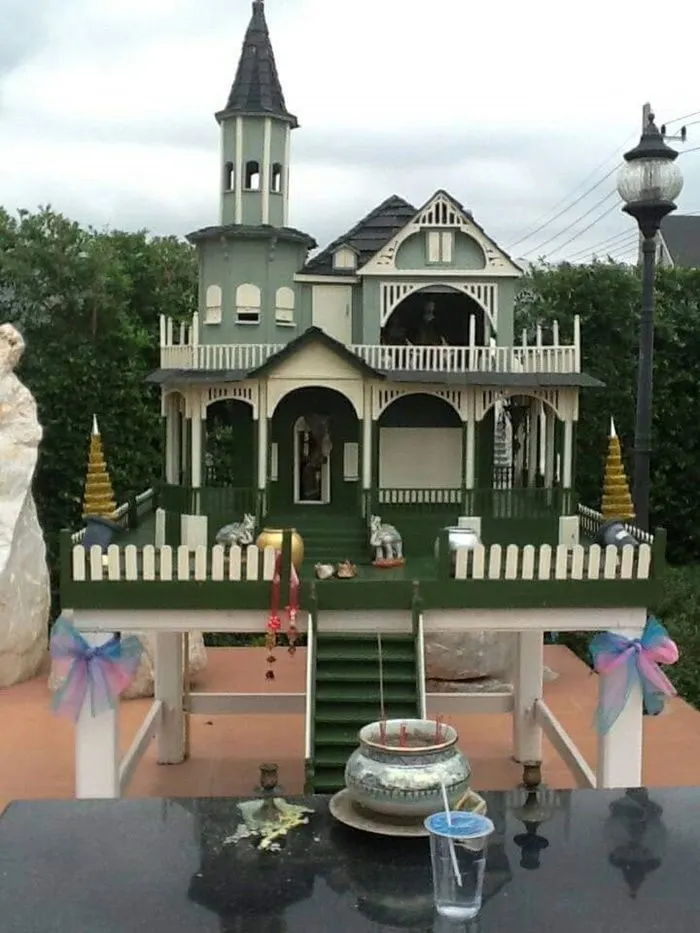 7.เป็นศาลพระภูมิสไตล์โมเดิร์นอีกแบบที่จำลองปราสาท แต่สร้างความเก๋ ดูเด่น