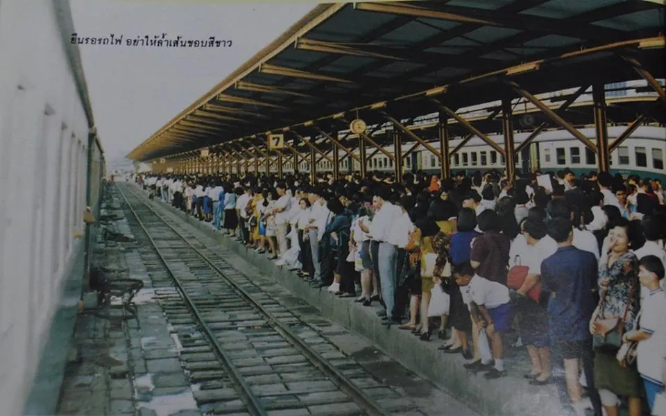 ผู้คนมายืนรอรถไฟไปทำงาน ไม่ต่างอะไรกับการยืนรอรถไฟฟ้าบีทีเอสในสมัยปัจจุบัน