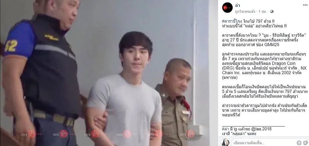 อีกทั้งยังพบว่าบริษัทที่กลุ่มของผู้ต้องหาได้กล่าวอ้างถึงไม่ได้เข้าไปประกอบธุรกิจเกี่ยวกับ dragon coin ( DRG ) จึงได้สอบถามไปยังตัวผู้ต้องหา แต่กับได้รับการบ่ายเบี่ยง จึงคิดว่าตนถูกหลอกจึงได้มาแจ้งความร้องทุกข์
