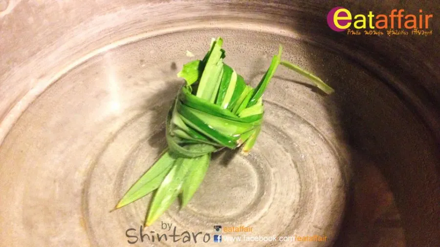 สองชั่วโมงผ่านไป ใครไม่มีเวลาก็ ตามแต่สะดวกครับ ตั้งหม้อเตรียมนึ่งครับ ใส่ใบเตยลงไป