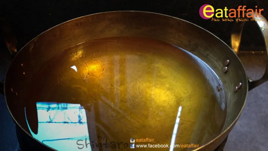 ต่อไปขั้นตอนการทอด ตั้งกะทะครับ ใส่น้ำมันปาล์มลงไป ผมใช้กะทะทองเหลืองครับ ความร้อนทั่วถึง ใครไม่มีก็ใช้กะทะธรรมดาครับ