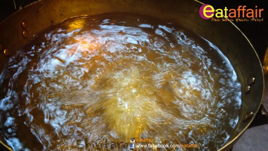 ใครชอบแบบหนังนิ่มๆ ก็สังเกตุดูครับ ถ้าใครชอบแบบกรอบๆ รอจนเหลืองกรอบ แล้วตักขึ้นได้เลยครับ