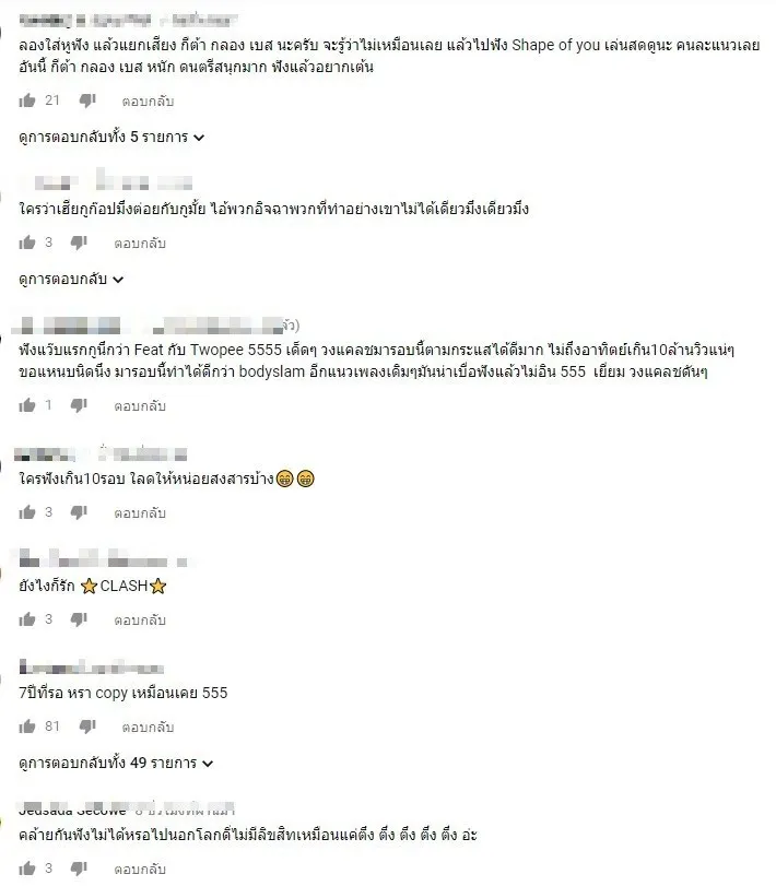 โซเชียลเทียบซิงเกิ้ลใหม่เพลงใจเย็นเย็น ของวง CLASH ที่ดันไปคล้ายกับเพลง Shape of you ของ Ed Sheeran ราวกับก็อปทำนองมา แถมเนื้อหา MV ก็คล้ายกัน ทำเอาชาวเน็ตเข้ามาถกเถียงกันเกี่ยวกับประเด็นนี้ ที่บางฝ่ายคิดว่าทำนองเหมือนกัน บางฝ่ายก็เข้ามาปกป้องว่าไม่ใช่ ทำนองอาจจะคล้ายกันบ้าง ทั้งนี้คงต้องรอให้วง CLASH ออกมาชี้แจงจะดีกว่า
