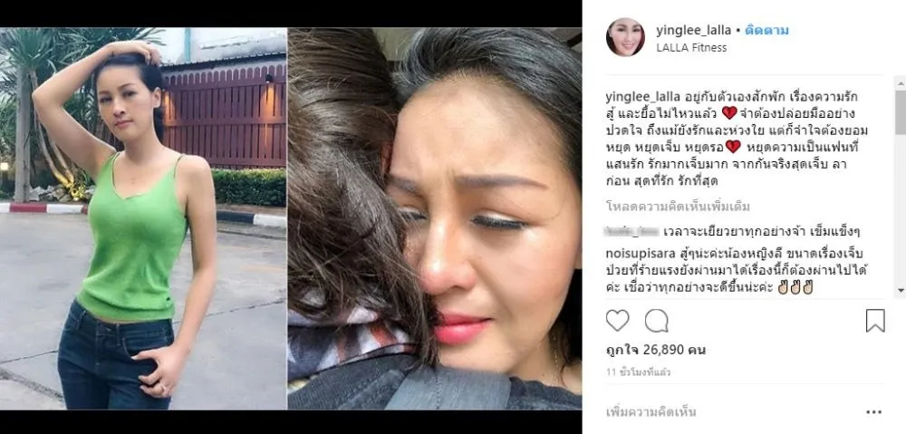 โดยนักร้องสาว หญิงลี ศรีจุมพล ได้โพสต์ เป็นภาพกำลังปล่อยโฮร่ำไห้ลงในไอจี พร้อมแคปชั่น ระบุว่า “อยู่กับตัวเองสักพัก เรื่องความรัก สู้ และยื้อไม่ไหวแล้ว จำต้องปล่อยมืออย่างปวดใจ ถึงแม้ยังรักและห่วงใย แต่ก็จำใจต้องยอมหยุด หยุดเจ็บ หยุดรอ หยุดความเป็นแฟนที่แสนรัก รักมากเจ็บมาก จากกันจริงสุดเจ็บ ลาก่อน สุดที่รัก รักที่สุด” ขณะที่ด้านแฟนคลับต่างเข้ามาให้กำลังใจนักร้องสาวลูกทุ่งเป็นจำนวนมาก